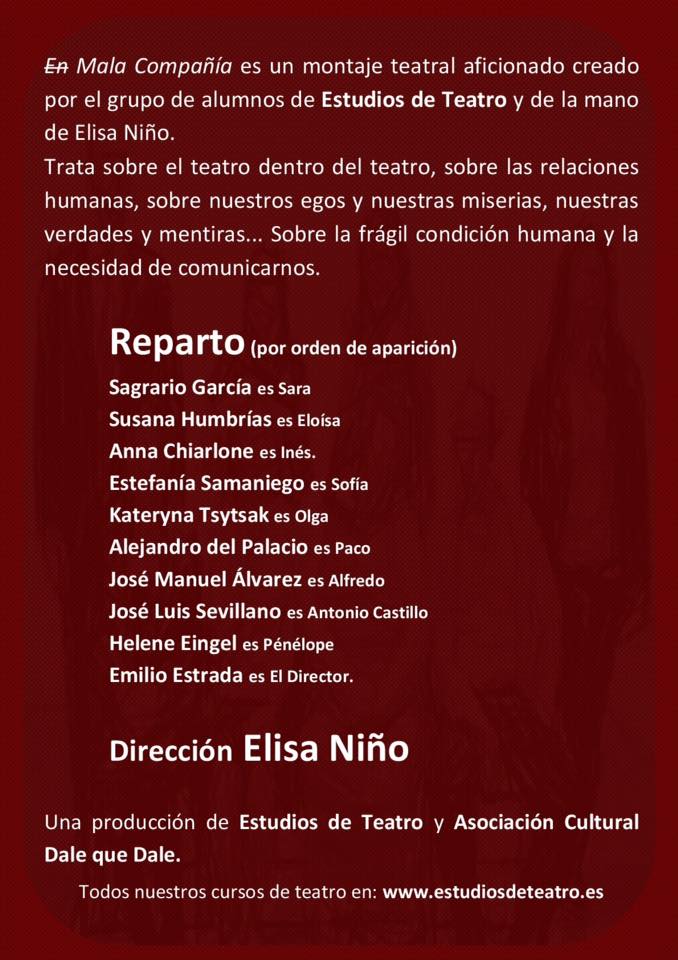(Cartel de reparto de la obra: “En Mala Compañía)